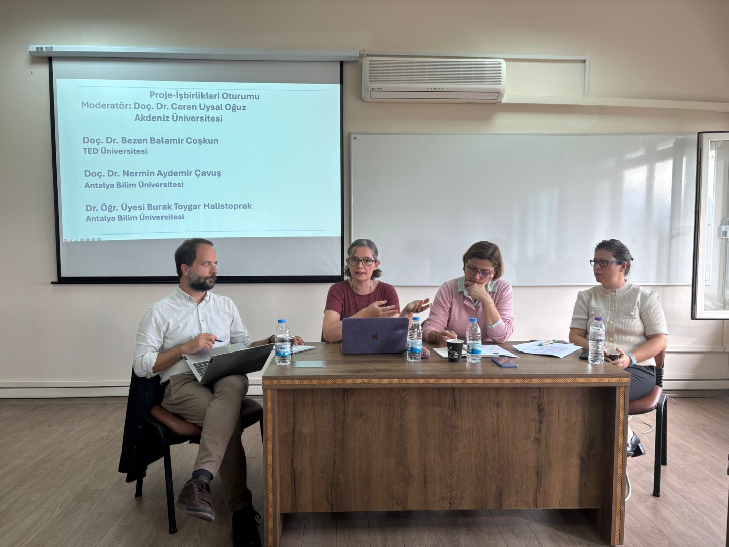 Kısa bir aranın ardından gerçekleştirilen “Proje–İşbirlikleri Oturumu”, Doç. Dr. Ceren Uysal Oğuz’un (Akdeniz Üniversitesi) moderatörlüğünde yürütüldü. Oturumda Doç. Dr. Bezen Balamir Coşkun (TED Üniversitesi), Doç. Dr. Nermin Aydemir Çavuş (Antalya Bilim Üniversitesi) ve Dr. Öğr. Üyesi Burak Toygar Halisotprak (Antalya Bilim Üniversitesi) yer aldı. Konuşmacılar, akademide proje üretiminin sürdürülebilirliği, ortak araştırma ağlarının kurulması ve genç araştırmacılar için fırsat alanlarının genişletilmesi üzerine değerlendirmelerde bulundular.
